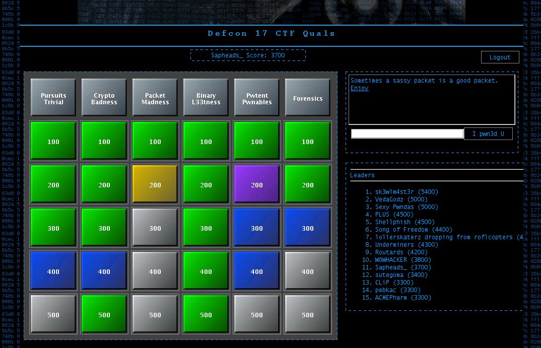 Encara no m’ho puc creure! Després de 48 hores gairebé sense dormir, sembla que hi ha la possibilitat de que anem a la final de la Defcon CTF a Las Vegas!